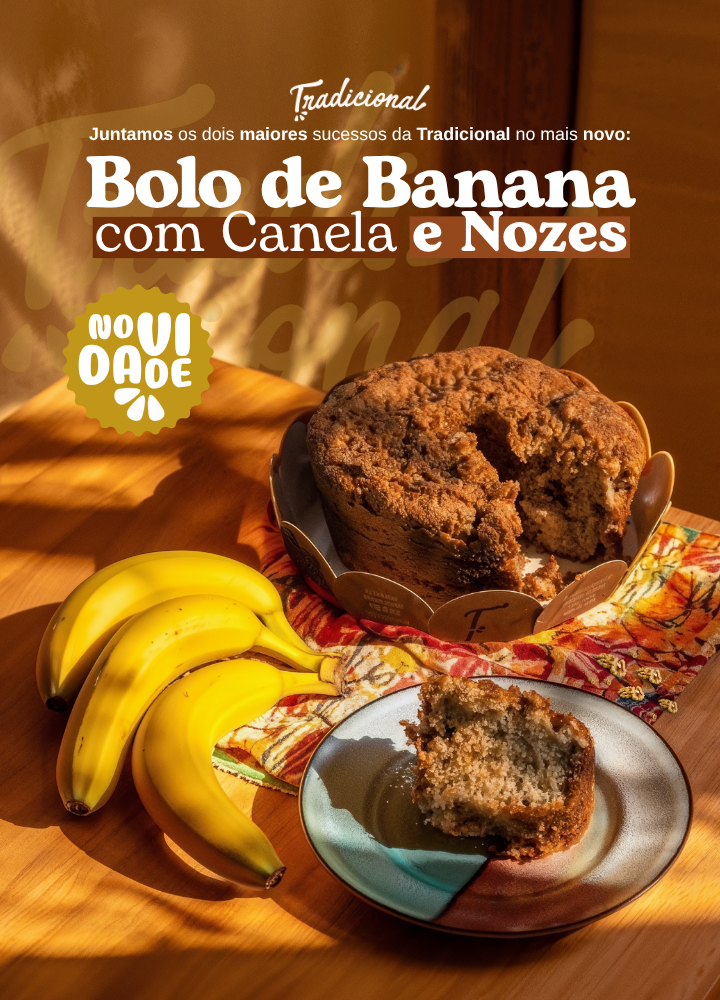 Bolos, tortas e sobremesas artesanais, cuidadosamente preparados com receitas feitas com carinho. Direto das nossas cozinhas para a sua casa, levando tradição e sabor em cada detalhe. Afinal, Tradicional é fazer parte do seu dia a dia!